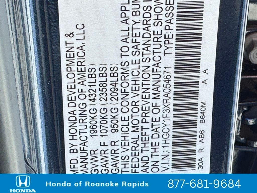 Black Cloth, 4-Wheel Disc Brakes, 8 Speakers, ABS brakes, Adaptive Cruise Control: Adaptive Cruise Control (ACC) with Low-Speed Follow, Air Conditioning, Alloy wheels, AM/FM radio, Apple CarPlay/Android Auto, Auto High-beam Headlights, Auto-dimming Rear-View mirror, Automatic temperature control, Blind Spot Information (BSI) System warning, Brake assist, Bumpers: body-color, Compass, Delay-off headlights, Driver door bin, Driver vanity mirror, Dual front impact airbags, Dual front side impact airbags, Electronic Stability Control, Emergency communication system: HondaLink Assist, Exterior Parking Camera Rear, Fabric Seat Trim, Four wheel independent suspension, Front anti-roll bar, Front Bucket Seats, Front Center Armrest, Front dual zone A/C, Front reading lights, Fully automatic headlights, Heated Front Bucket Seats, Heated front seats, Illuminated entry, Knee airbag, Lane departure: Lane Keeping Assist System (LKAS) active, Low tire pressure warning, Occupant sensing airbag, Outside temperature display, Overhead airbag, Overhead console, Panic alarm, Passenger door bin, Passenger vanity mirror, Power door mirrors, Power driver seat, Power moonroof, Power steering, Power windows, Radio data system, Radio: 180-Watt AM/FM Audio System, Rear anti-roll bar, Rear reading lights, Rear seat center armrest, Rear side impact airbag, Rear window defroster, Remote keyless entry, Security system, Speed control, Speed-sensing steering, Speed-Sensitive Wipers, Split folding rear seat, Steering wheel mounted audio controls, Tachometer, Telescoping steering wheel, Tilt steering wheel, Traction control, Trip computer, Variably intermittent wipers, Wheels: 17 x 7.5 Pewter Gray, Black Cloth.