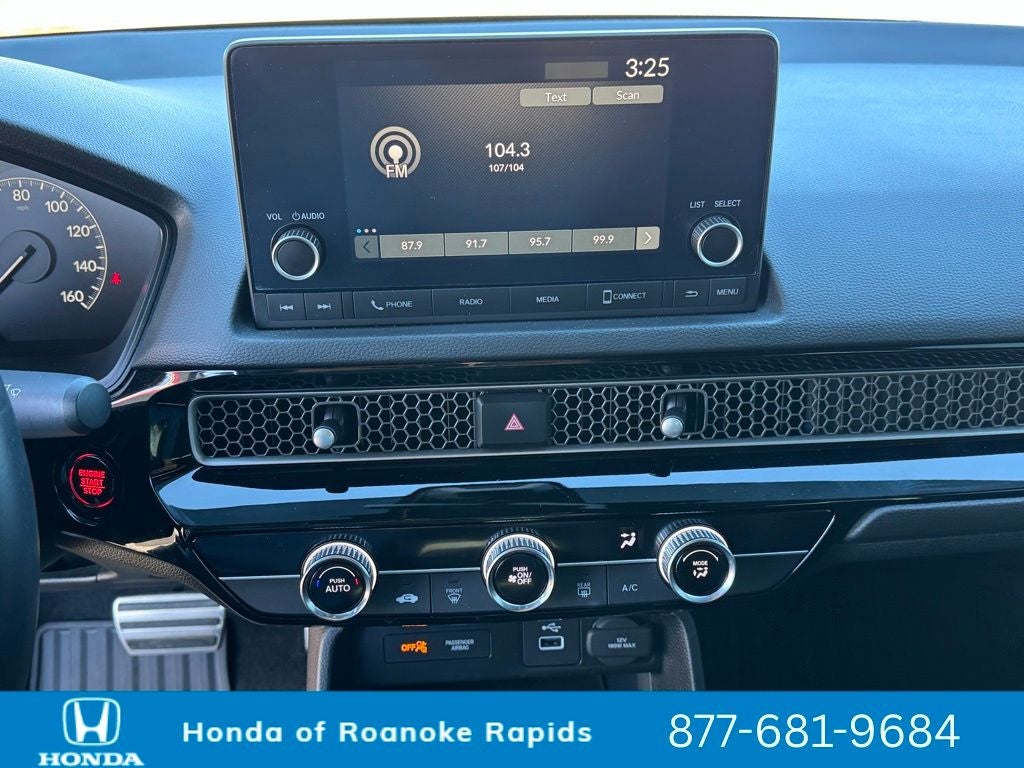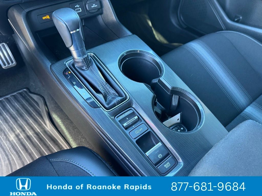Black Artificial Leather, 4-Wheel Disc Brakes, 8 Speakers, ABS brakes, Adaptive Cruise Control: Adaptive Cruise Control (ACC) with Low-Speed Follow, Air Conditioning, Alloy wheels, AM/FM radio, Apple CarPlay/Android Auto, Auto High-beam Headlights, Automatic temperature control, Brake assist, Bumpers: body-color, Cloth/Leatherette Seating Surfaces, Delay-off headlights, Driver door bin, Driver vanity mirror, Dual front impact airbags, Dual front side impact airbags, Electronic Stability Control, Emergency communication system: HondaLink, Exterior Parking Camera Rear, Four wheel independent suspension, Front anti-roll bar, Front Bucket Seats, Front Center Armrest, Front reading lights, Fully automatic headlights, Illuminated entry, Knee airbag, Leather Shift Knob, Leather steering wheel, Low tire pressure warning, Occupant sensing airbag, Outside temperature display, Overhead airbag, Panic alarm, Passenger door bin, Passenger vanity mirror, Power door mirrors, Power steering, Power windows, Radio data system, Radio: 180-Watt Audio System, Rear anti-roll bar, Rear side impact airbag, Rear window defroster, Remote keyless entry, Security system, Speed control, Speed-sensing steering, Steering wheel mounted audio controls, Tachometer, Telescoping steering wheel, Tilt steering wheel, Traction control, Trip computer, Wheels: 18 Gloss Black Alloy, Black Artificial Leather.