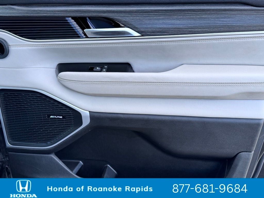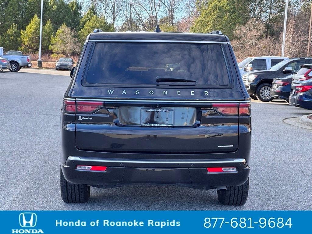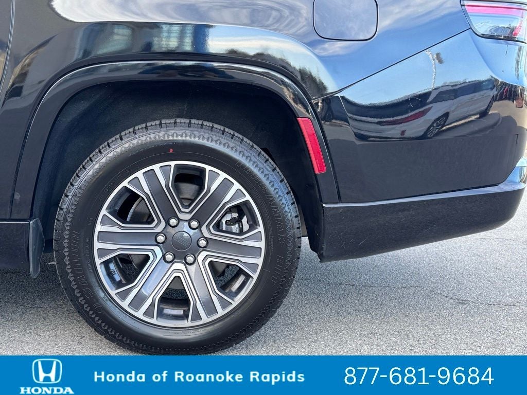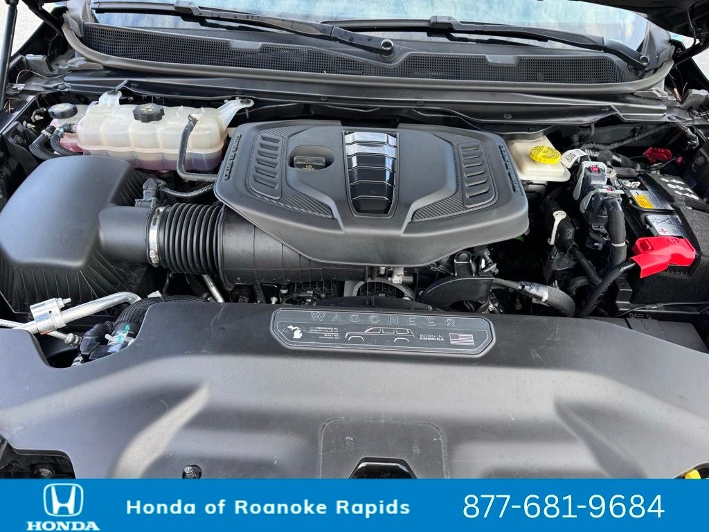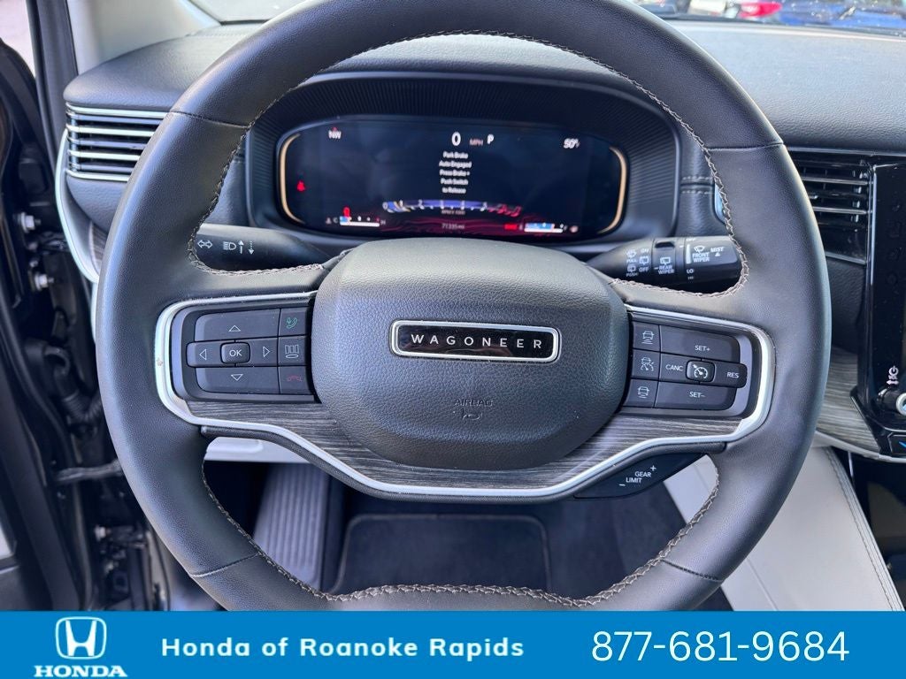 10 Speakers, 3.55 Rear Axle Ratio, 3rd row seats: bench, 4-Wheel Disc Brakes, 8-Passenger Seating, ABS brakes, Adjustable pedals, Air Conditioning, Alloy wheels, AM/FM radio: SiriusXM with 360L, Anti-whiplash front head restraints, Apple CarPlay/Android Auto, Audio memory, Auto-dimming door mirrors, Auto-dimming Rear-View mirror, Auto-leveling suspension, Automatic temperature control, Brake assist, Bumpers: body-color, Compass, Delay-off headlights, Driver door bin, Driver vanity mirror, Driver's Seat Mounted Armrest, Dual front impact airbags, Dual front side impact airbags, Electronic Stability Control, Emergency communication system: Wagoneer Connect, Exterior Parking Camera Rear, Four wheel independent suspension, Front anti-roll bar, Front Bucket Seats, Front Center Armrest w/Storage, Front dual zone A/C, Front fog lights, Front reading lights, Full Length Floor Console, Fully automatic headlights, Garage door transmitter, Genuine wood console insert, Genuine wood dashboard insert, Genuine wood door panel insert, Heated door mirrors, Heated front seats, Heated steering wheel, Illuminated entry, Knee airbag, Leather Trimmed Bucket Seats, Low tire pressure warning, Memory seat, Navigation System, Normal Duty Suspension, Occupant sensing airbag, Outside temperature display, Overhead airbag, Overhead console, Panic alarm, Passenger door bin, Passenger seat mounted armrest, Passenger vanity mirror, Pedal memory, Power adjustable front head restraints, Power door mirrors, Power driver seat, Power Liftgate, Power passenger seat, Power steering, Power windows, Quick Order Package 25J, Radio data system, Radio: Uconnect 5 Nav w/10.1 Display, Rain sensing wipers, Rear air conditioning, Rear anti-roll bar, Rear reading lights, Rear seat center armrest, Rear window defroster, Rear window wiper, Reclining 3rd row seat, Remote keyless entry, Security system, Speed control, Speed-sensing steering, Speed-Sensitive Wipers, Split folding rear seat, Steering wheel memory, Steering wheel mounted audio controls, Tachometer, Telescoping steering wheel, Tilt steering wheel, Traction control, Trip computer, Turn signal indicator mirrors, Variably intermittent wipers, Ventilated front seats, Voltmeter, Wheels: 20 x 9.0 Premium 2 Aluminum.