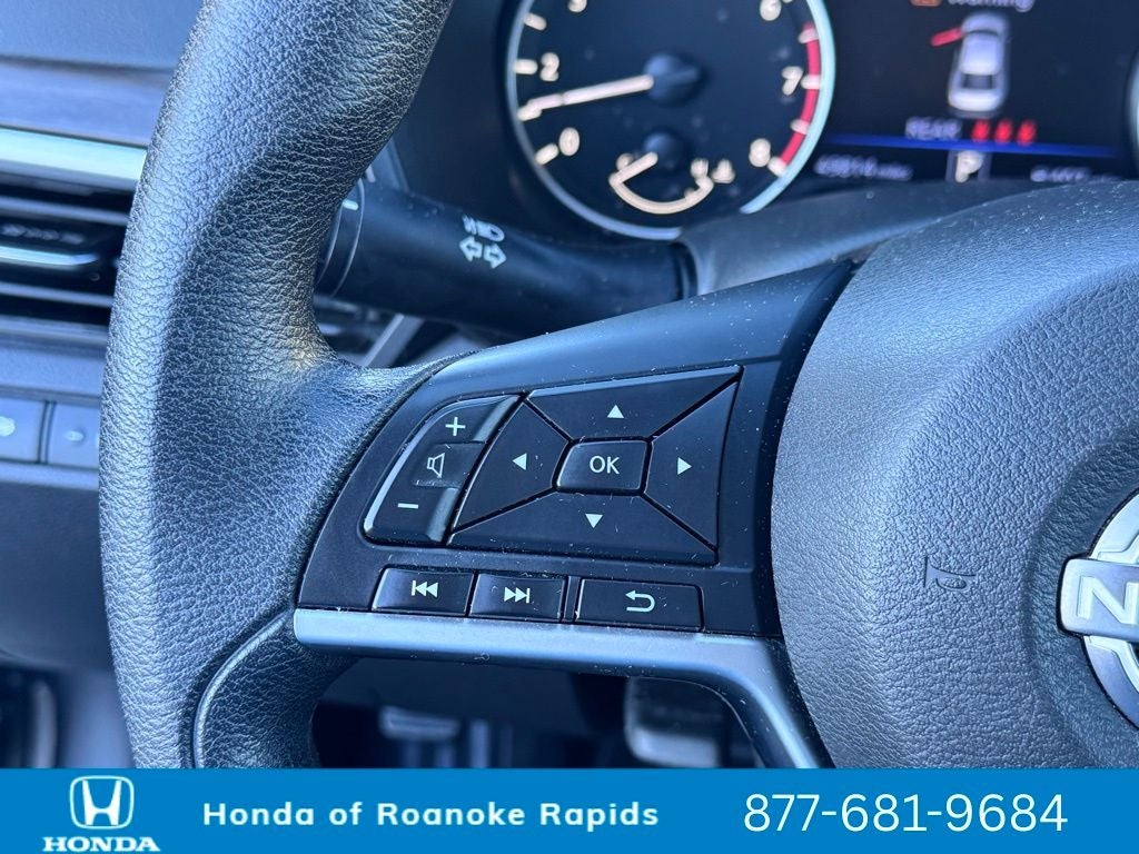 CVT with Xtronic, 17 Alloy Wheels, 4-Wheel Disc Brakes, 6 Speakers, ABS brakes, Air Conditioning, Alloy wheels, AM/FM radio: SiriusXM, Auto High-beam Headlights, Blind Spot Warning, Brake assist, Bumpers: body-color, Cloth Seat Trim, Delay-off headlights, Driver door bin, Driver vanity mirror, Dual front impact airbags, Dual front side impact airbags, Electronic Stability Control, Floor Mats/Trunk Mat/Hideaway Net, Four wheel independent suspension, Front anti-roll bar, Front Bucket Seats, Front Center Armrest, Front reading lights, Fully automatic headlights, Illuminated entry, Knee airbag, Low tire pressure warning, NissanConnect featuring Apple CarPlay, Occupant sensing airbag, Outside temperature display, Overhead airbag, Overhead console, Panic alarm, Passenger door bin, Passenger vanity mirror, Power door mirrors, Power driver seat, Power steering, Power windows, Radio data system, Radio: AM/FM Audio System, Rear anti-roll bar, Rear Parking Sensors, Rear reading lights, Rear seat center armrest, Rear side impact airbag, Rear window defroster, Remote keyless entry, Security system, Speed control, Speed-sensing steering, Speed-Sensitive Wipers, Split folding rear seat, Steering wheel mounted audio controls, Tachometer, Telescoping steering wheel, Tilt steering wheel, Traction control, Trip computer, Variably intermittent wipers, CVT with Xtronic.